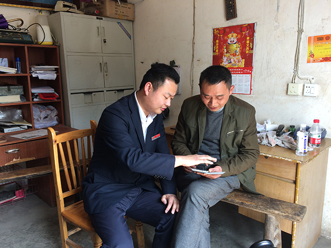 重庆农商行客户经理向吴玉龙演示手机银行操作。